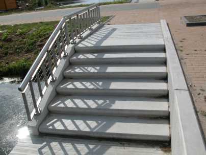 De elementen worden gefabriceerd van beton met hoogovencement en een lage watercementfactor. Door middel van speciale bekistingen, waarbij alle zichtzijden kistzijde zijn, krijgt het beton een mooie gladde strakke uitstraling. Naast de uitvoering glad grijze beton is ook een gestraalde versie al dan niet in combinatie met een kleur leverbaar. Bovendien kan de aantrede worden voorzien van een structuur teneinde de treden stroever te maken. Ten behoeve van de leuningen kunnen reeds vóór het storten schroefhulzen op de juiste plaats worden aangebracht. De leuningen kunnen in standaard uitvoering of naar eigen ontwerp door ons worden meegeleverd.