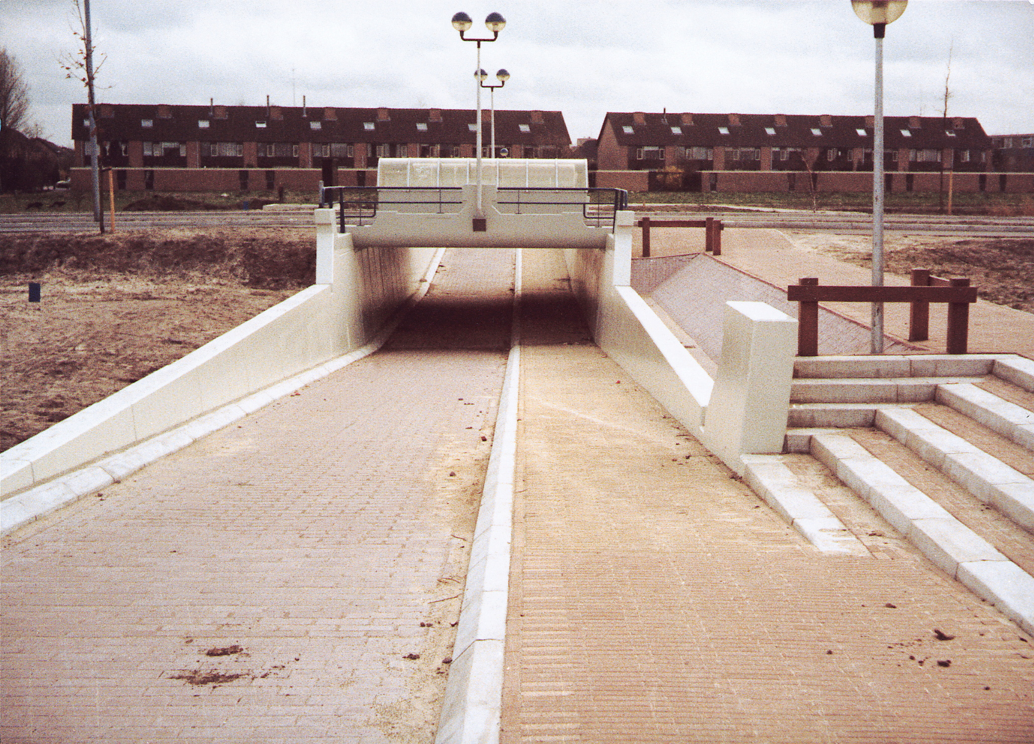 Inmiddels hebben wij vele voetgangers-/fietstunnels, die geheel of gedeeltelijk in het grondwater liggen, compleet met opritten in prefab uitgevoerd. Ook tunnels voor autoverkeer zijn door ons aangelegd.